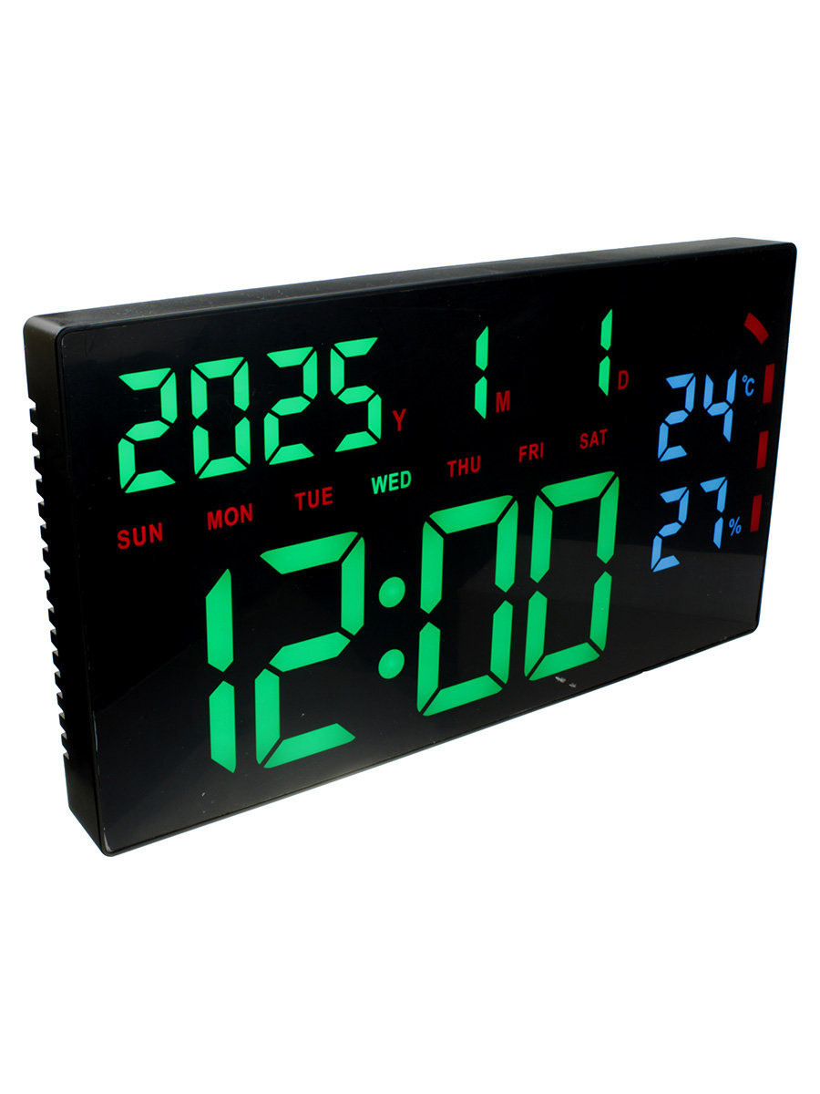 ЖК-дисплей с большим экраном, дата, день недели, температура, влажность, время и будильник отображаются на одном экране.
