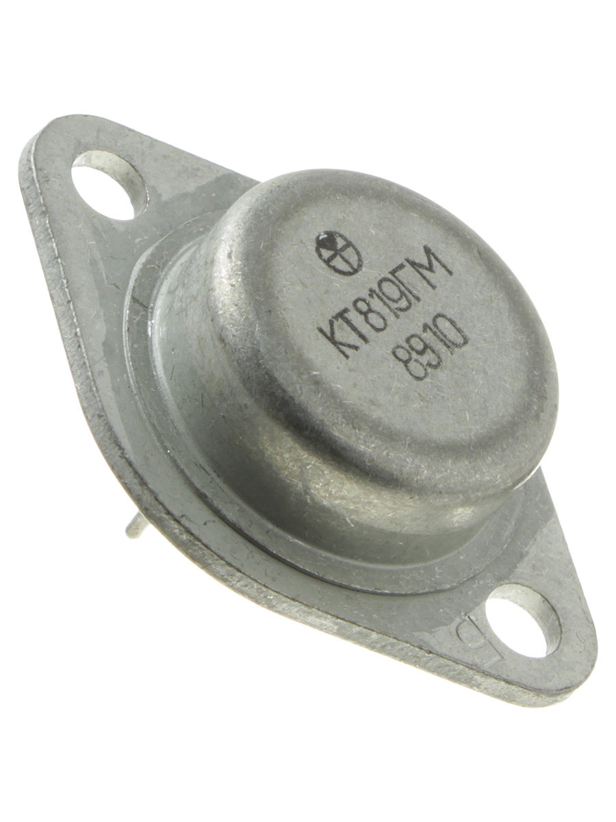 Транзисторы КТ819ГМ кремниевые мезаэпитаксиально-планарные структуры n-p-n переключательные. Предназначены для применения в усилителях и переключающих устройствах. Используются для работы в электронной аппаратуре общего назначения. Выпускаются в металлическом корпусе со стеклянными изоляторами и жёсткими выводами. Маркировка нанесена цифро-буквенным кодом на корпусе транзистора. Тип корпуса: КТ-9 (TO-3). Масса транзистора не более 20,0 г.