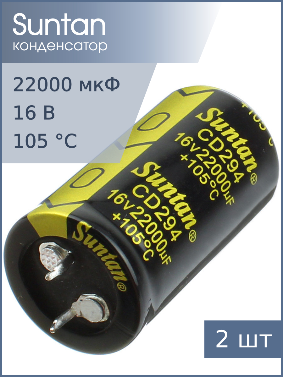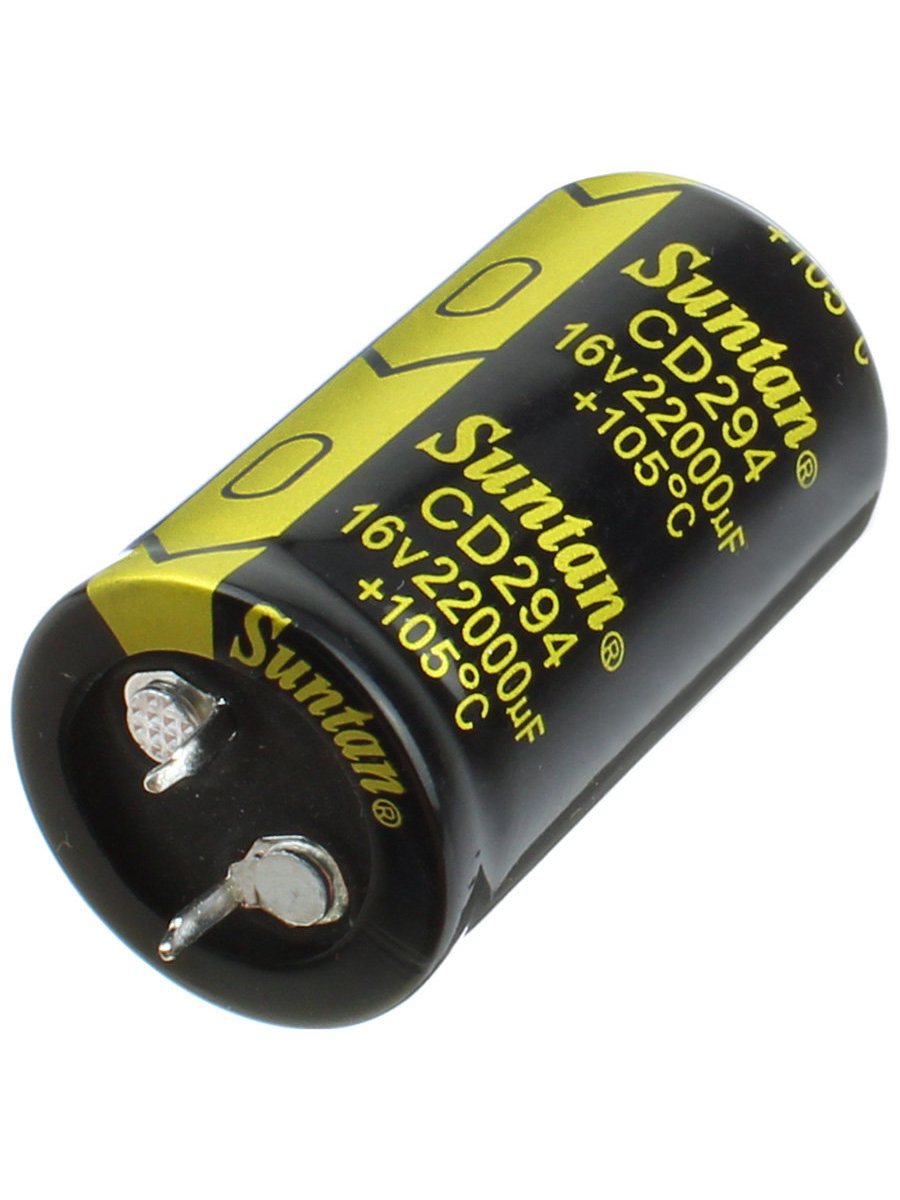 Конденсатор электролитический 22000мкФ 16В, 25*45мм, 105С, Suntan TS13DR1C223MSB0D0R Snap-in, 3300мА, 2000час (упаковка 2шт)