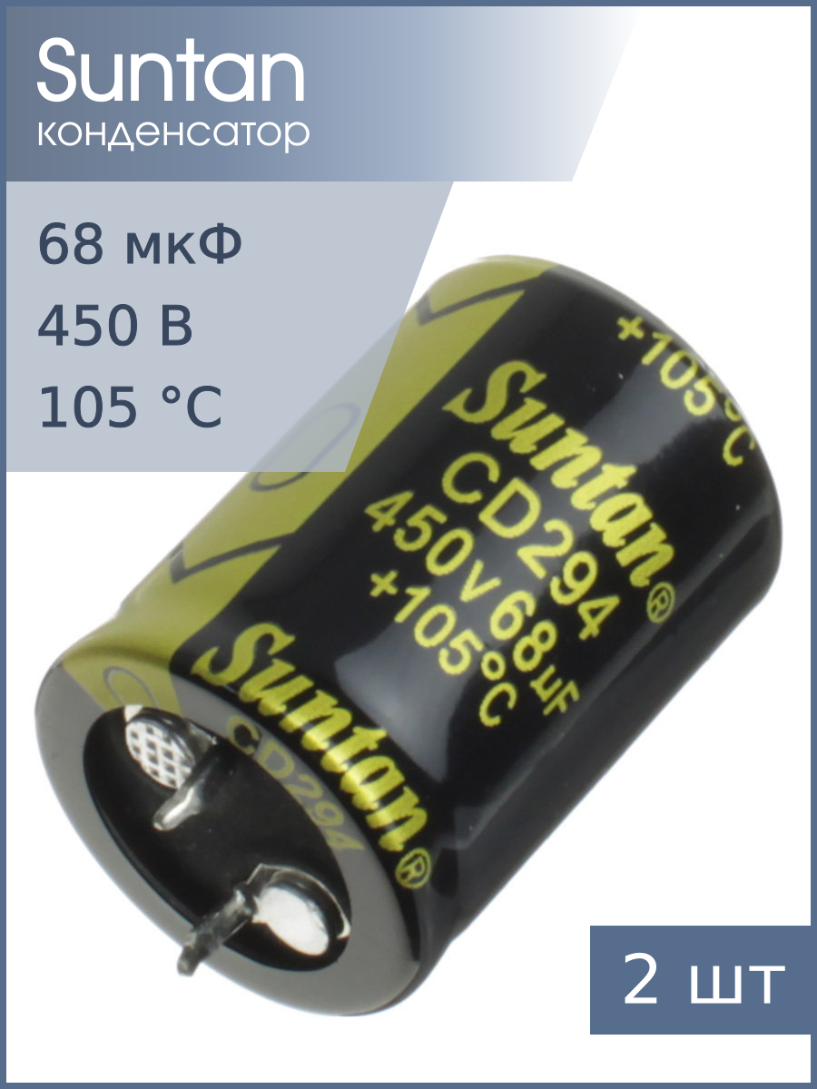 Конденсатор 68мкФ 450В 22*30мм 105С Suntan TS13DR2W680MSB0D0R Snap-in 500мА 2000час (упаковка 2шт)