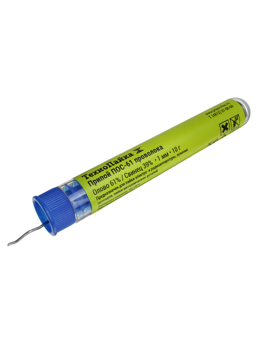 Припой ПОС-61 без канифоли, предназначен для пайки электро- и радиоаппаратуры, лужения проводов, пайки металлических изделий