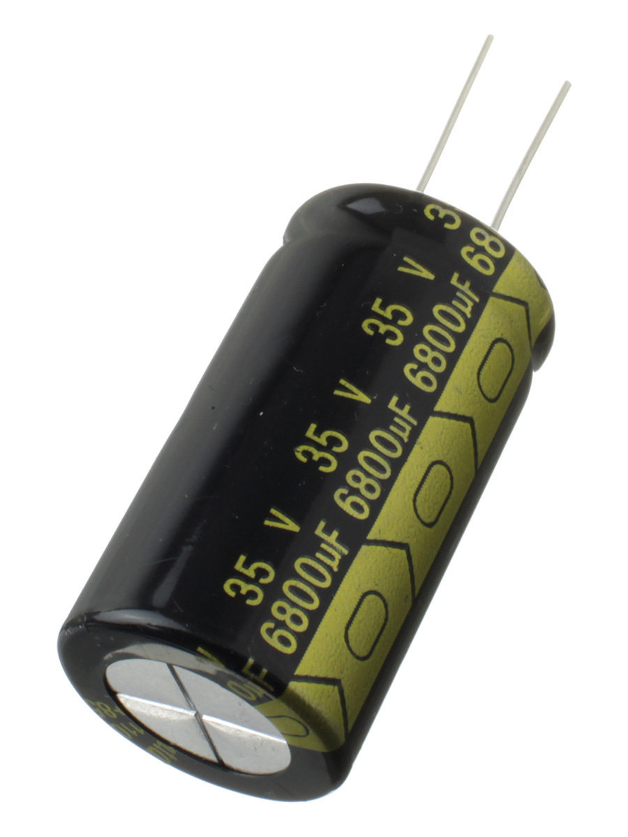 Cap Aluminum electrolytic 6800uF 35V 20% (22 X 40mm) Radial 10mm 2600mA 2000h 85C Bulk