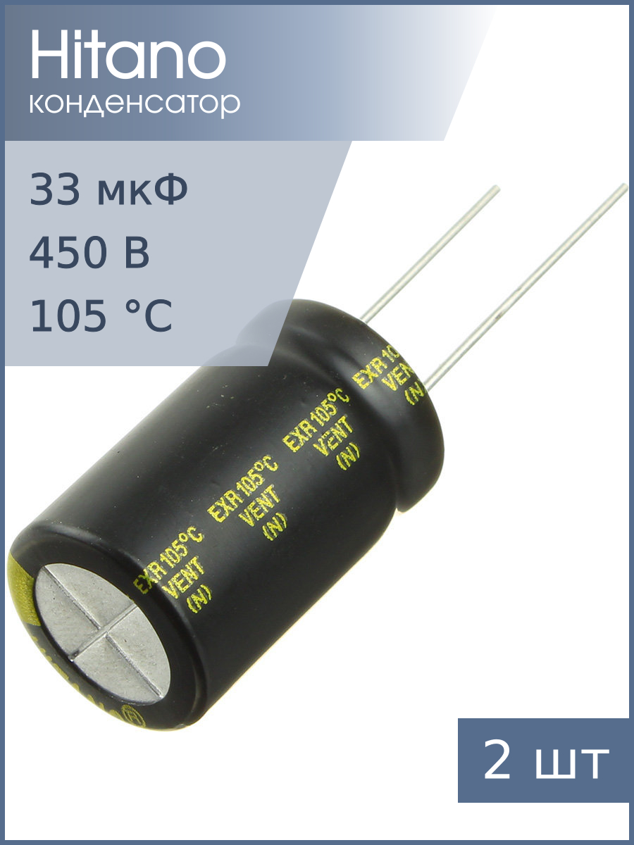 Конденсатор 33мкФ 450В 16*26мм 105C Hitano EXR330M2WB 460мА 5000час (упаковка 2шт)