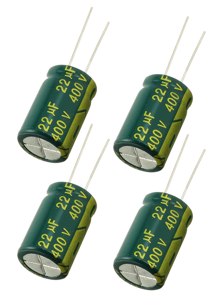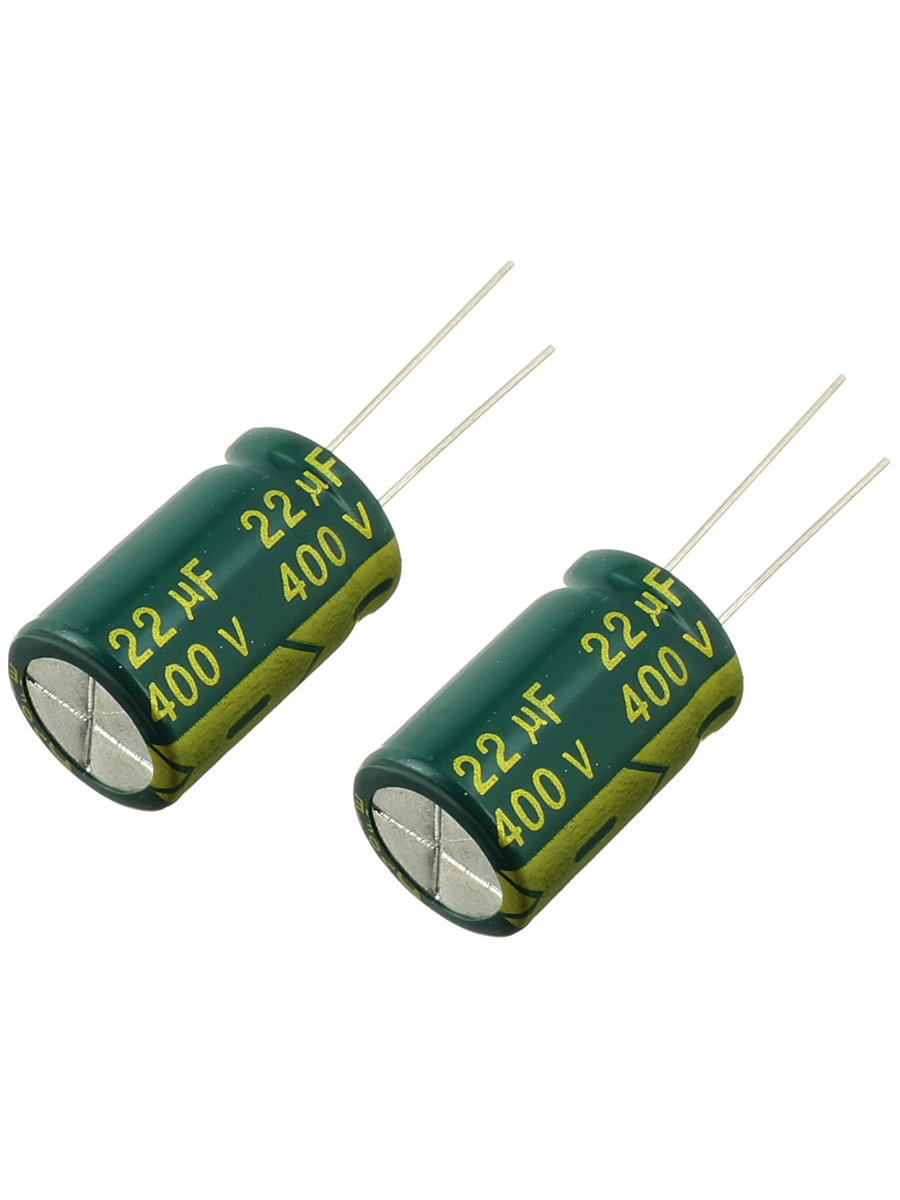 Тип Конденсатор алюминиевый электролитический 22мкФ 400В ±20% (13х21мм) радиальный, шаг 5мм 3Ом 275мА 4000час 105°C