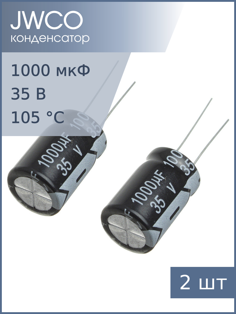 Конденсатор 1000мкФ 35В 13*21мм 105С (упаковка 2шт) JWCO KM102M1VBKJ1321VBK 850мА 2000час