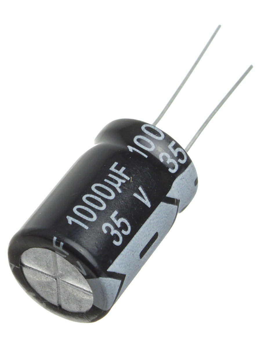 Тип конденсатора: Конденсатор алюминиевый электролитический 1000мкФ 35В ±20% (13х21мм) радиальный 5мм 850мА 2000часов 105C