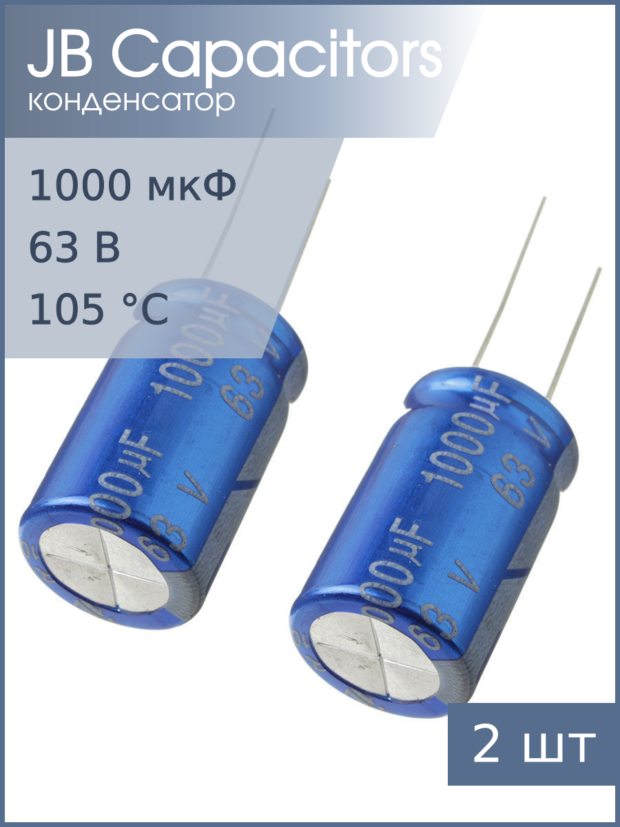 Конденсатор 1000мкФ 63В 16*25мм 105С (упаковка 2шт) JB JRB1J102M07501600250000B