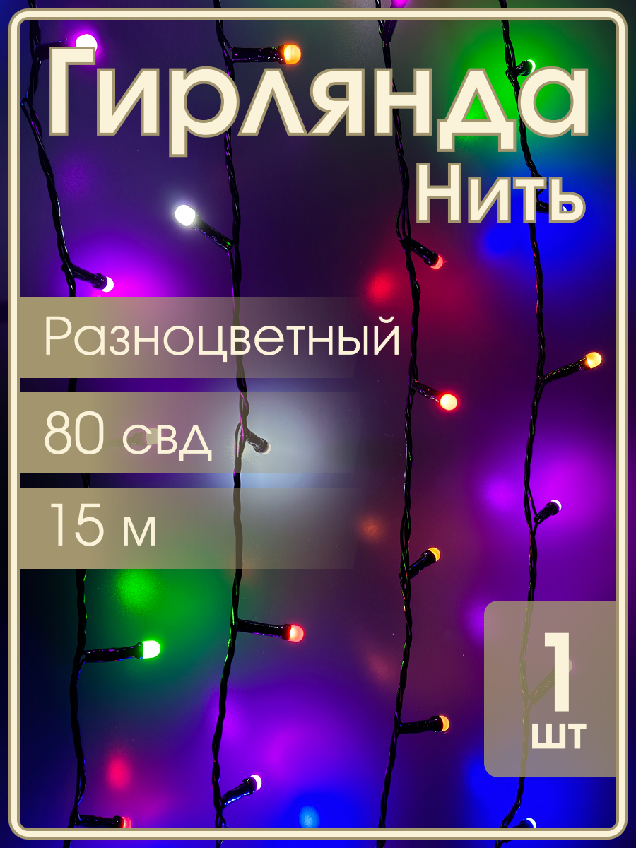 Гирлянда 80свд матовые d6мм, 15м цветная, черный провод