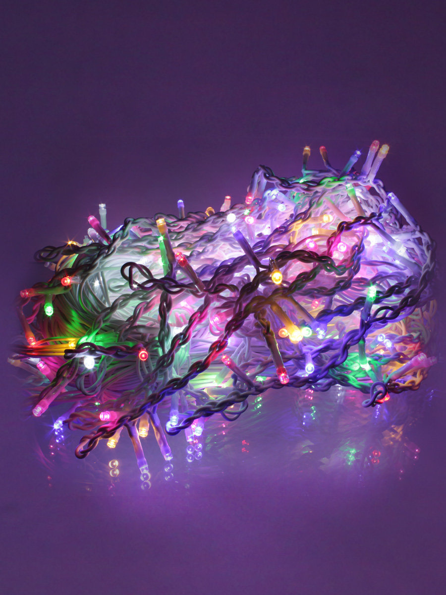Свечение : разноцветное (синий, зеленый, розовый, желтый, красный, белый) с вкраплением мерцающих свд белого холодного свечения на конце нити