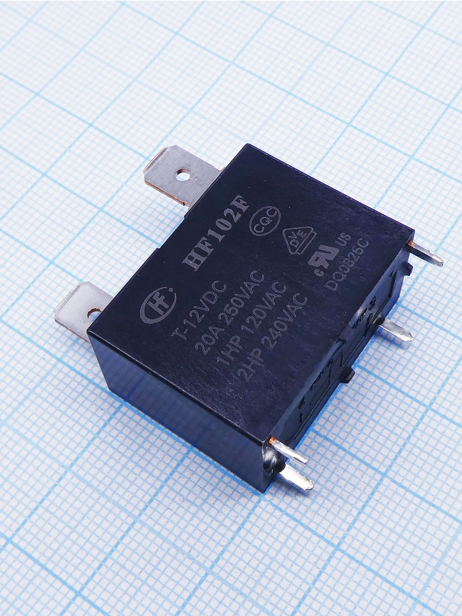 Реле 12В, 1 группа 20А 250В AC Hongfa HF102F/T-12VDC SPST-NO 1A (упаковка 2шт)