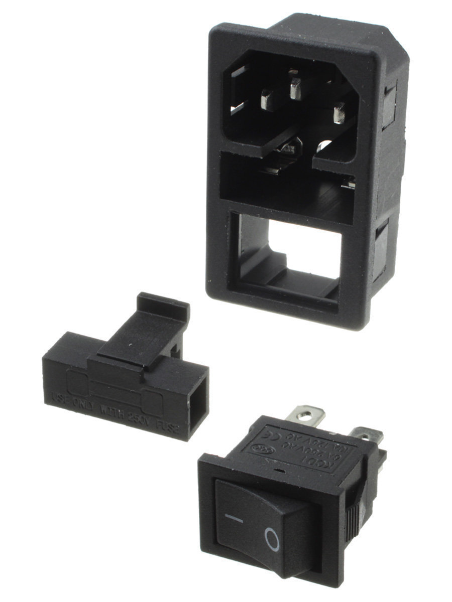 Разъем гнездо сетевое 3-х полюсное AC-01 с выключателем, держателем предохранителя в корпус