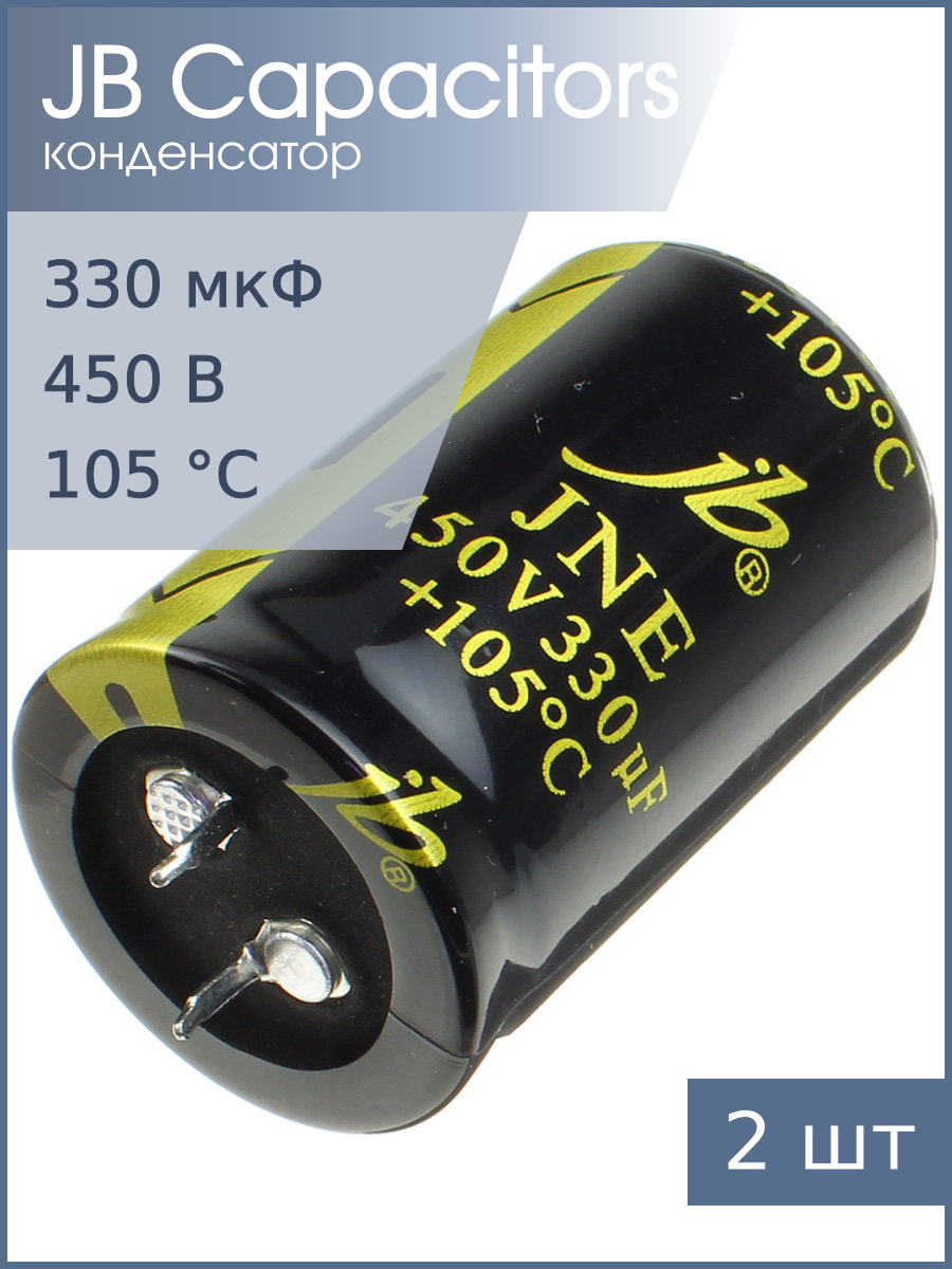 Конденсатор 330мкФ 450В 30*45мм 105C (упаковка 2шт) JB JNE2W331M10003000450 Snap-in 1300мА 2000час