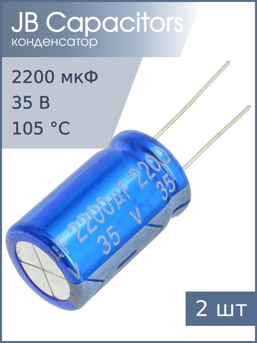 Конденсатор 2200мкФ 35В 16*26мм105С JB JRC1V222M075016002600000B 2820мА 2000час (упаковка 2шт)
