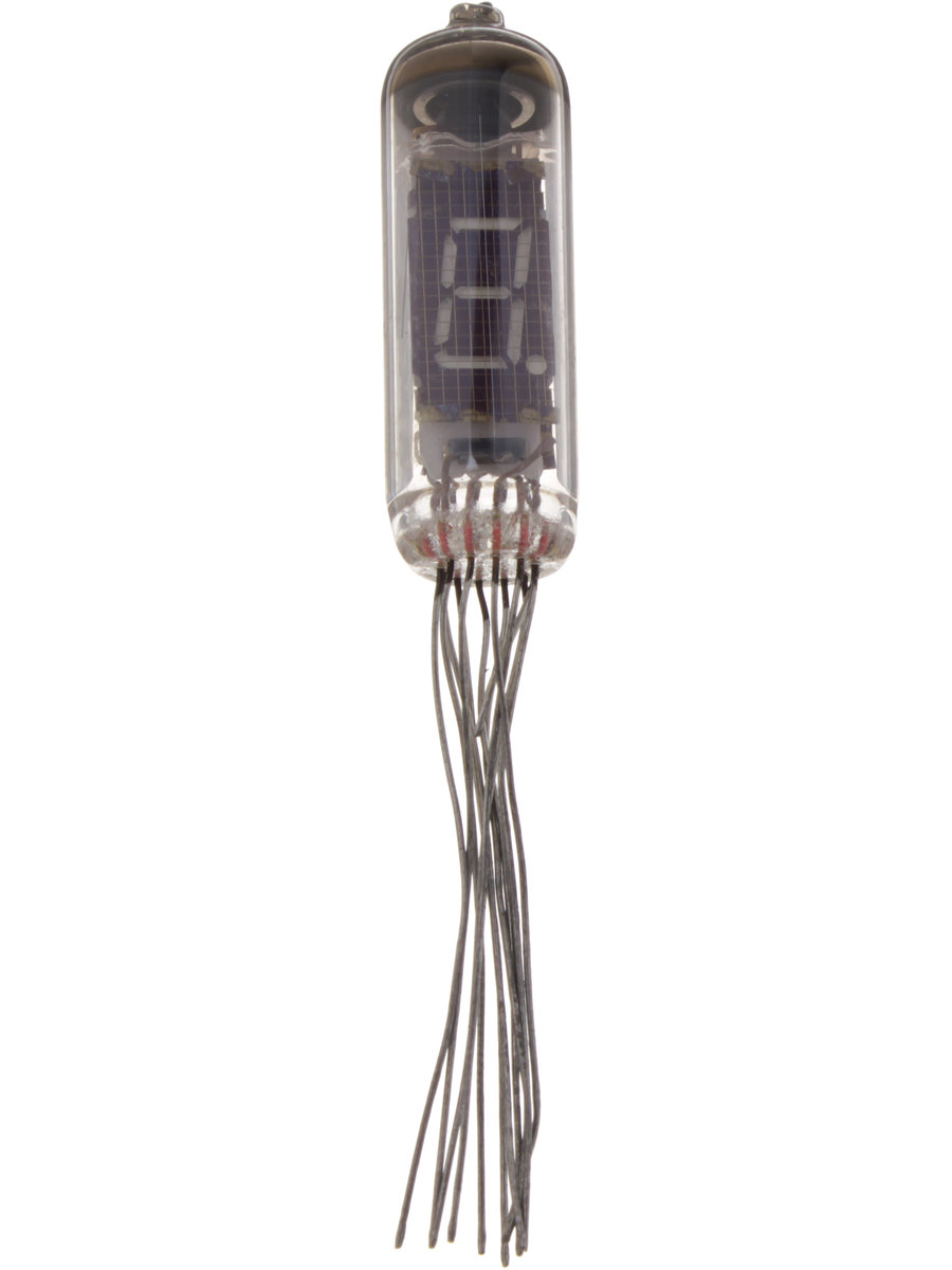 Люминесцентный вакуумный сверхминиатюрный индикатор. Предназначен для формирования цифр (0...9) и десятичного знака (точки) из отдельных светящихся сегментов, расположенных в одной плоскости, в устройствах вычислительной техники. Свечение - зеленое. Долговечность не менее 10000 ч. Масса не более 7 г. Технические условия: СД3.031.002ТУ. Основные технические параметры люминесцентного вакуумного индикатора ИВ-3А: • Размер знака: 5,9 х 9,1 мм; • Яркость свечения: не менее 500 кд/м2; • Число сегментов: 8; • Напряжение накала: 0,7...1 В; • Напряжение сетки: 20...30 В; • Напряжение анодов-сегментов: 20...30 В; • Ток накала: 25...35 мА; • Ток сетки: не более 12 мА; • Ток анодов-сегментов: не более 0,45 мА; • Время готовности: не более 0,2 с;