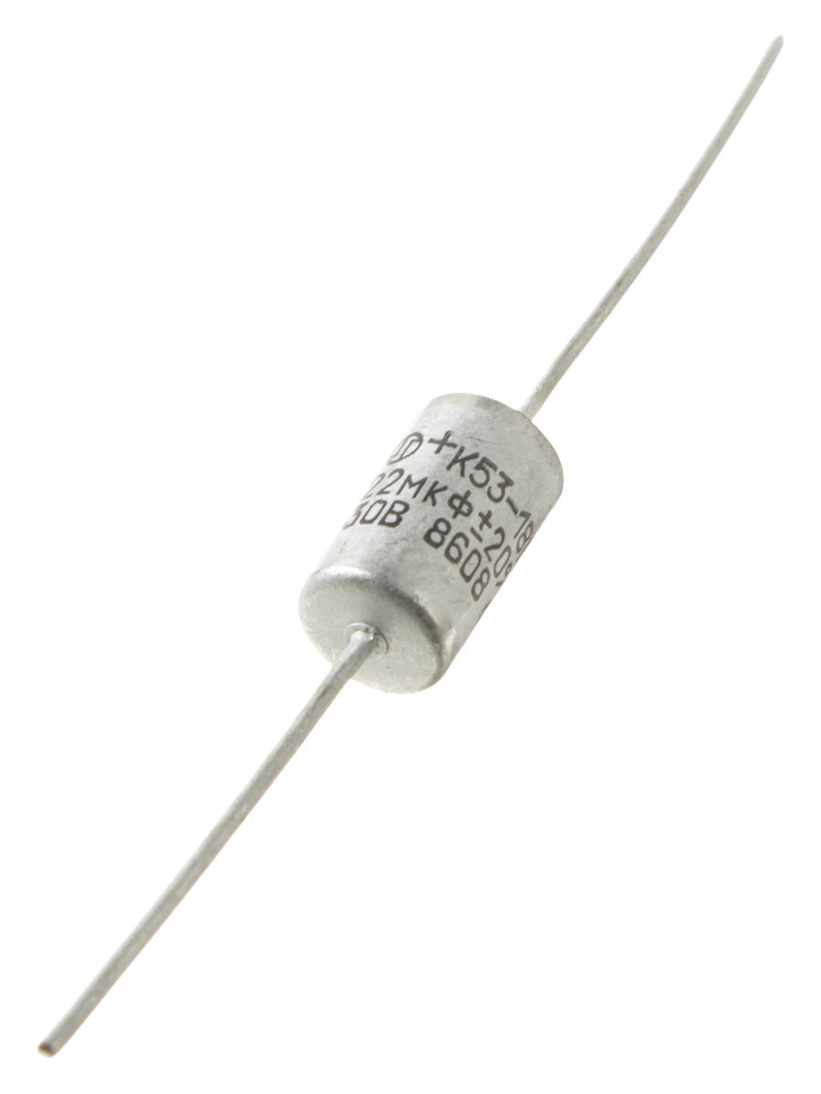 Конденсаторы К53-18В оксидно-полупроводниковые алюминиевые полярные герметизированные. Выпускаются в цилиндрических металлических корпусах с аксиальными проволочными выводами. Предназначены для работы в цепях постоянного и пульсирующего токов. Применяются в продукции специального и общего назначения, бортовой и наземной аппаратуре связи, приборах, требующих повышенной стабильности электропараметров.