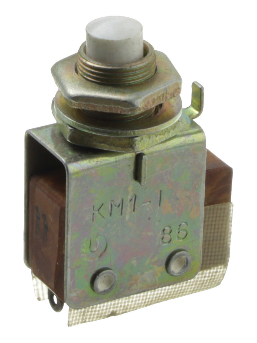 Кнопки КМ1-1 малогабаритные однополюсные с одним переключающим контактом без фиксации в нажатом положении. Предназначены для коммутации электрических цепей постоянного и переменного тока при напряжении не более 250 В и силе тока до 4,0 А. Используется для работы в радиоэлектронной и радиотехнической аппаратуре общего и специального назначения. Кнопки крепятся в отверстии на панели путём фиксации с помощью гайки и резьбового соединения. Подсоединение проводов к хвостовикам контактов методом пайки.