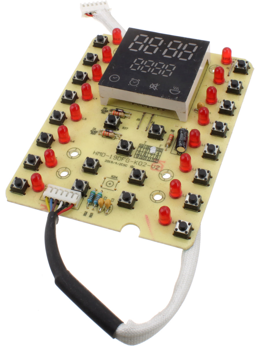Модуль управления и индикации мультиварки HMD-19DFG-K02-V2 для мультиварки Redmond RMC-M253-PUV2, RMC-M25 — это надежная и высококачественная печатная плата, разработанная специально для обеспечения эффективной работы мультиварки.