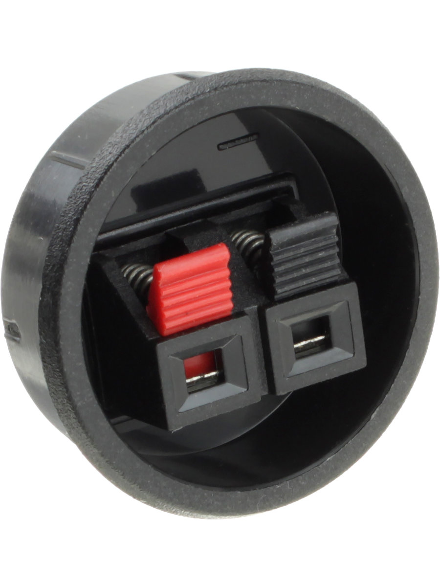 Разъем зажим акустики круг d32мм на корпус 2 входа пластик, зажим