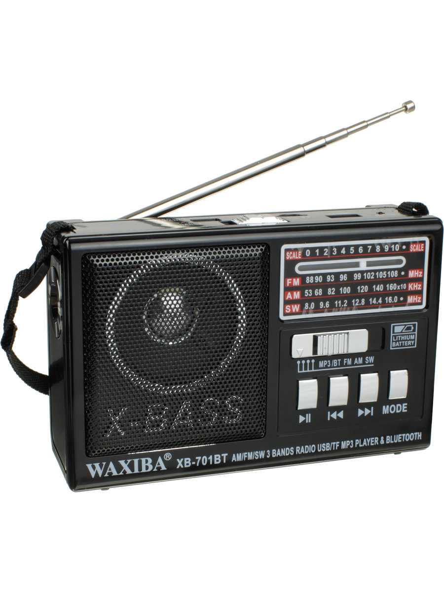 Радиоприемник XB-701BT USB/microSD/bluetooth Waxiba аккумулятор батарейки фонарик, черный