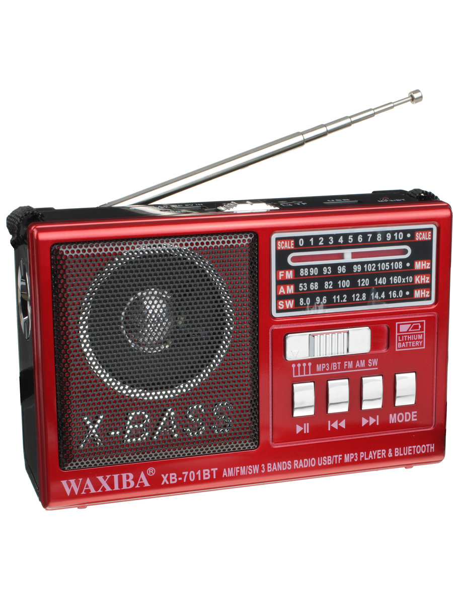 Радиоприемник XB-701BT USB/microSD/bluetooth Waxiba аккумулятор батарейки фонарик, красный