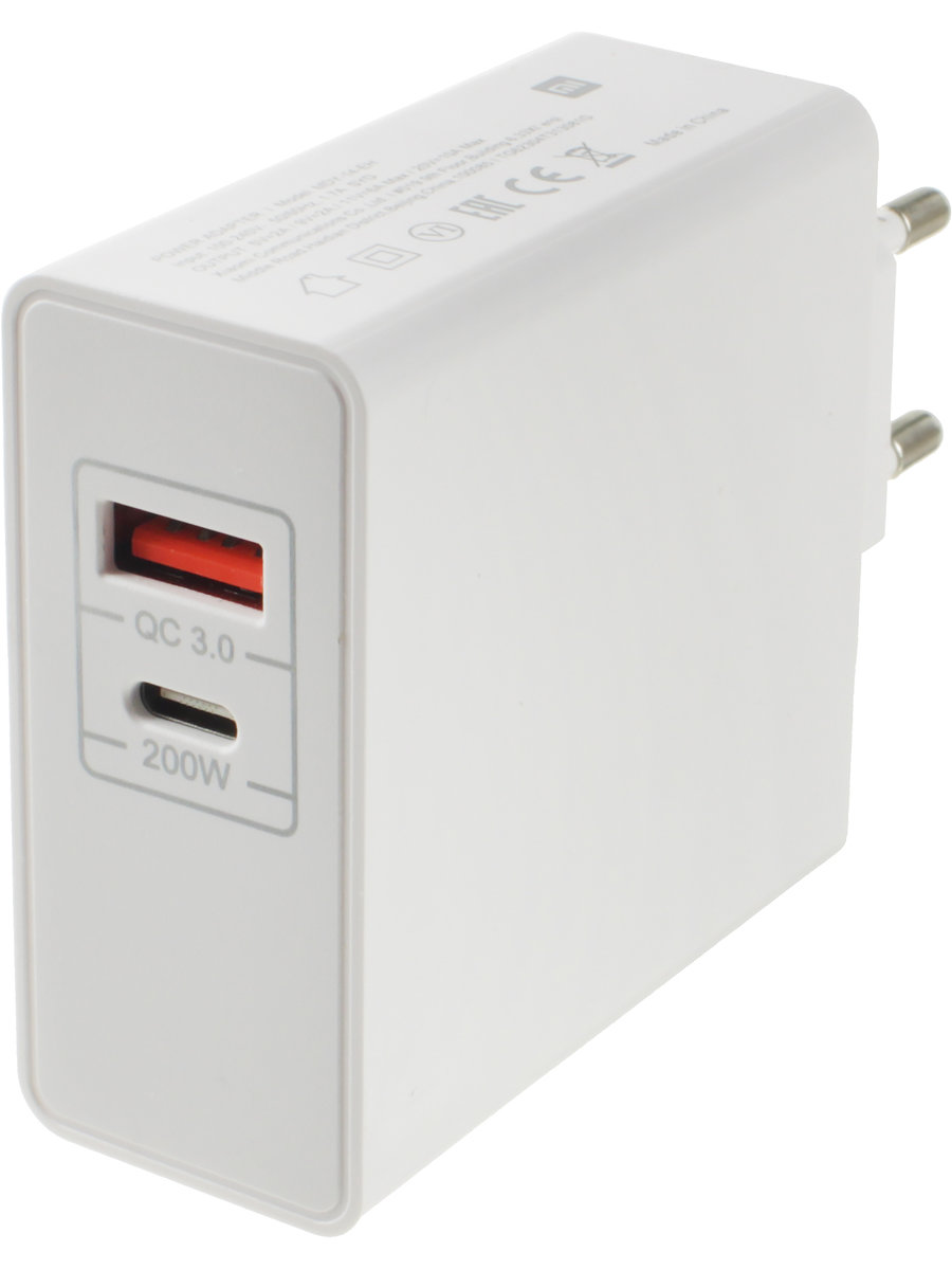 Зарядное устройство вход 220В/выход USB(G), Type C(G) 10А PD200W шнур Usb- Type C