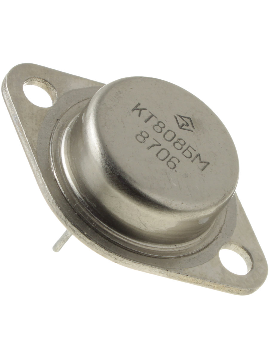 Транзисторы КТ808БМ кремниевые мезапланарные структуры n-p-n высоковольтные, переключательные. Предназначены для применения в переключающих устройствах, генераторах строчной развертки, электронных регуляторах напряжения. Используются для работы в узлах и блоках электронной аппаратуры общего назначения. Выпускаются в металлическом корпусе со стеклянными изоляторами и жесткими выводами. Маркировка нанесена цифро-буквенным кодом на корпусе транзистора. Тип корпуса: КТ-9 (TO-3). Масса транзистора не более 20,0 г.
