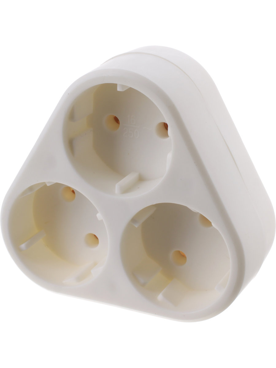 Сетевой тройник 16А в ряд, без заземления, Navigator, треугольник