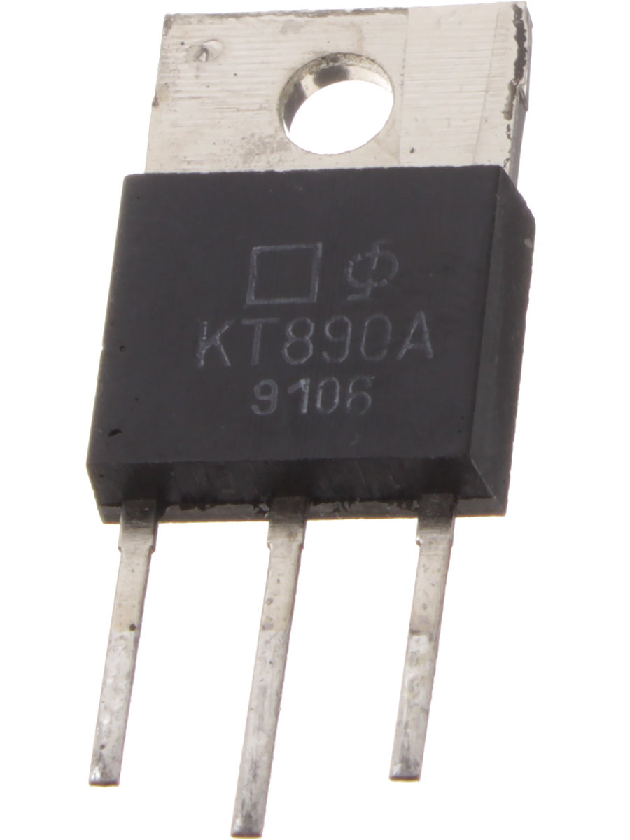 Транзисторы КТ890А кремниевые мезапланарные структуры n-p-n составные усилительные. Предназначены для применения в схемах зажигания автомобильных двигателей. Выпускаются в пластмассовом корпусе с жесткими выводами. Тип прибора указывается на корпусе. Масса транзистора не более 6,0 г. Тип корпуса: КТ-43А (ТО-218).
