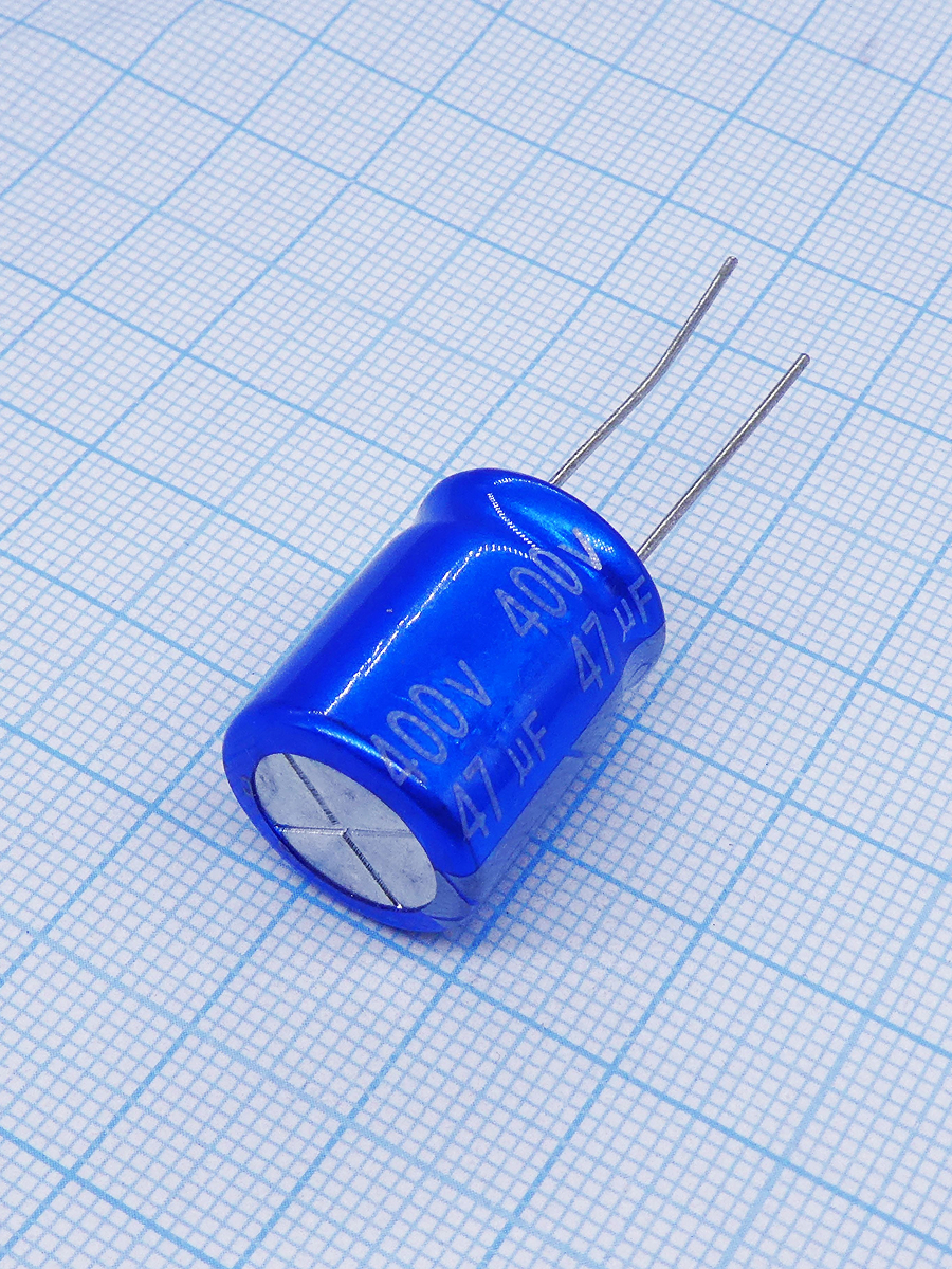 Тип Конденсатор алюминиевый электролитический 47мкФ 400В ±20% (16х20мм) радиальный, шаг 7.5мм 390мА 2000час 105C россыпь