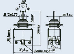 Тумблер П2Т-9 33,5х19х60мм