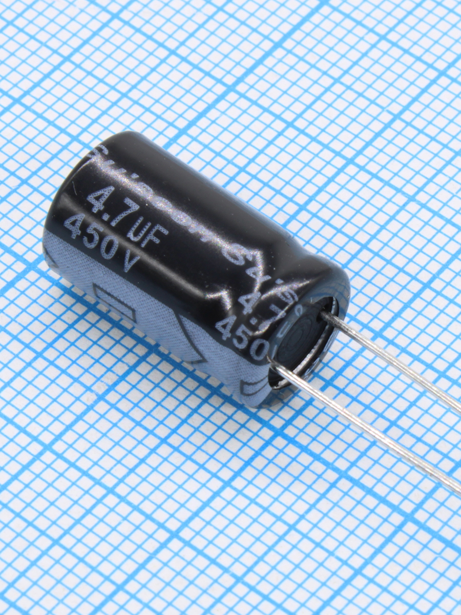 Тип: Конденсатор алюминиевый электролитический 4.7мкФ 450В ±20% (10х16мм) радиальный 5мм 60мА 5000час 105C россыпь